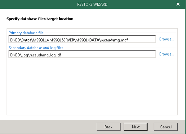 Restaurar mediante Veeam Backup la copia de la base de datos de un servidor SQL Server en otro servidor
