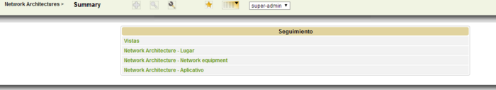 Una vez definidas las asociaciones de elementos el sigiuente paso será crearnos una o varias vistas. Para ello vamos a glpi→Plugins→Network Architectures