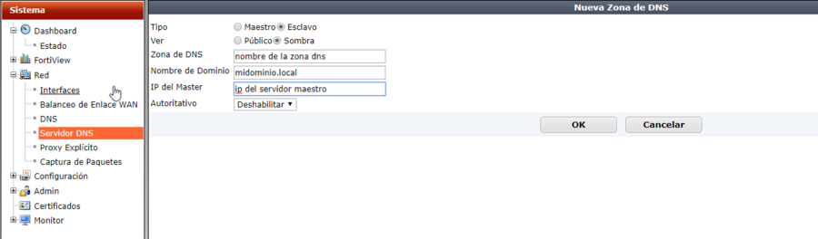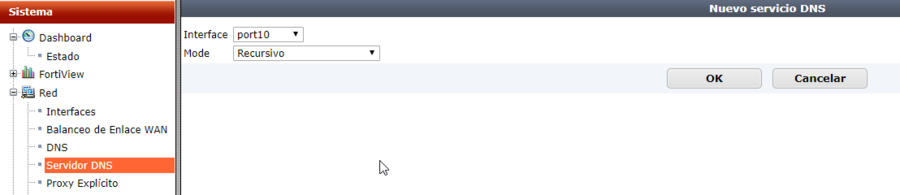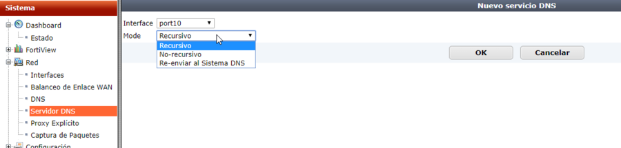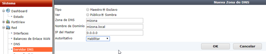 Vamos a crear el servidor como esclavo, para ello vamos a nuestro fortigate →Sistema → Red → Servidor DNS