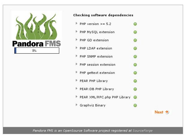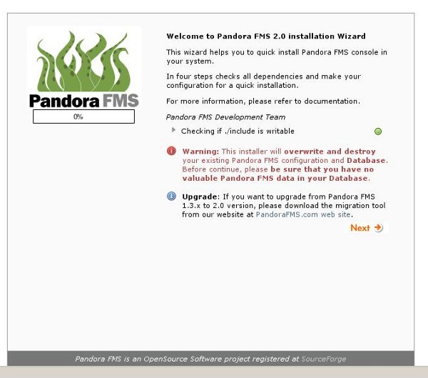 Con esto podemos entrar vía web con la IP del servidor en el navegador para terminar la instalación de Pandora. En este paso se crea la base de datos y se
