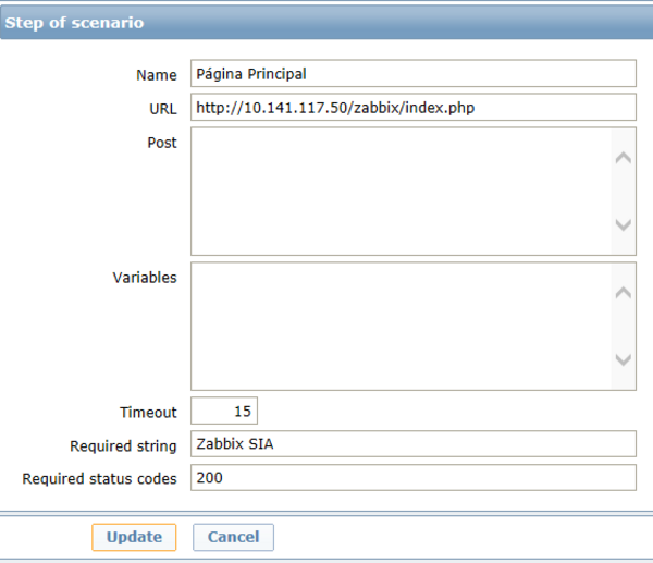 Mediante zabbix podemos monitorizar si nuestro servicio web funciona correctamente. Vamos a realizar una prueba con el propio Zabbix server.