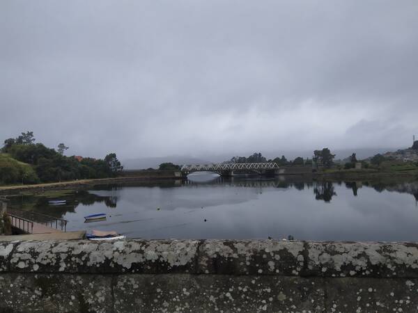 LLegamos a Pontevedra donde hacemos otra parada para reponer fuerzas y llevarnos una grata sorpresa con su bullicioso casco viejo. Una vez repuestas las fuerzas seguimos nuestro camino y cruzamos el río Lérez por el puente del Burgo.