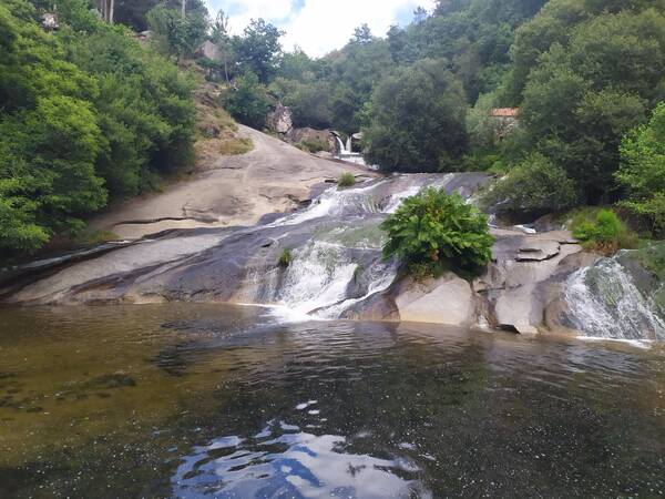 El camino nos lleva por distintos tramos de asfalto, en uno de ellos nosotros tomamos una desviación de menos de 1 km que nos lleva a las Cascadas del río Barosa, donde hacemos un alto para refrescarnos.