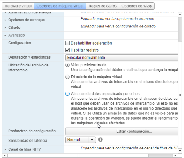 En opciones de máquina virtual → Avanzado → Editar configuración → Agregar Parámetros de configuración