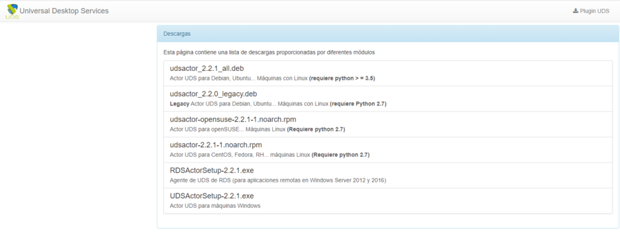 - Descargargamos e instalamos el Actor UDS. Desde la GUI de nuestro servidor UDS