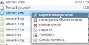 Una vez movida al nuevo datastore, debemos ir ir a la nueva carpeta, pinchar sobre el fichero de la plantilla (el que tiene la extensión vmtx) y volver a registrarla.