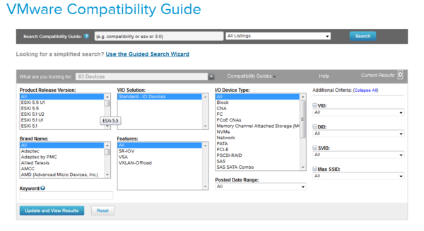 Otra opción para encontrar el driver adecuado es ir a Vmware Compatibility Guide http://www.vmware.com/resources/compatibility/search.php y realizar la búsqueda según el criterio deseado.