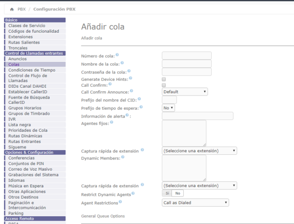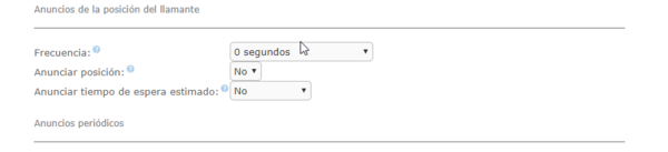 Para indicarle al llamante el número que ocupa en la cola de espera para ser atendido, creamos o editamos una de las colas PBX → Colas . Buscamos la opción Anuncios de la posición del llamante