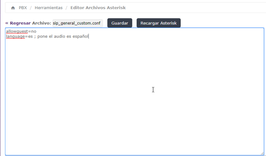 Hay que guardar los cambios y recargar la configuración del Asterisk