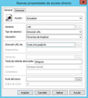 - Dirección URL = Dirección de destino del acceso directo